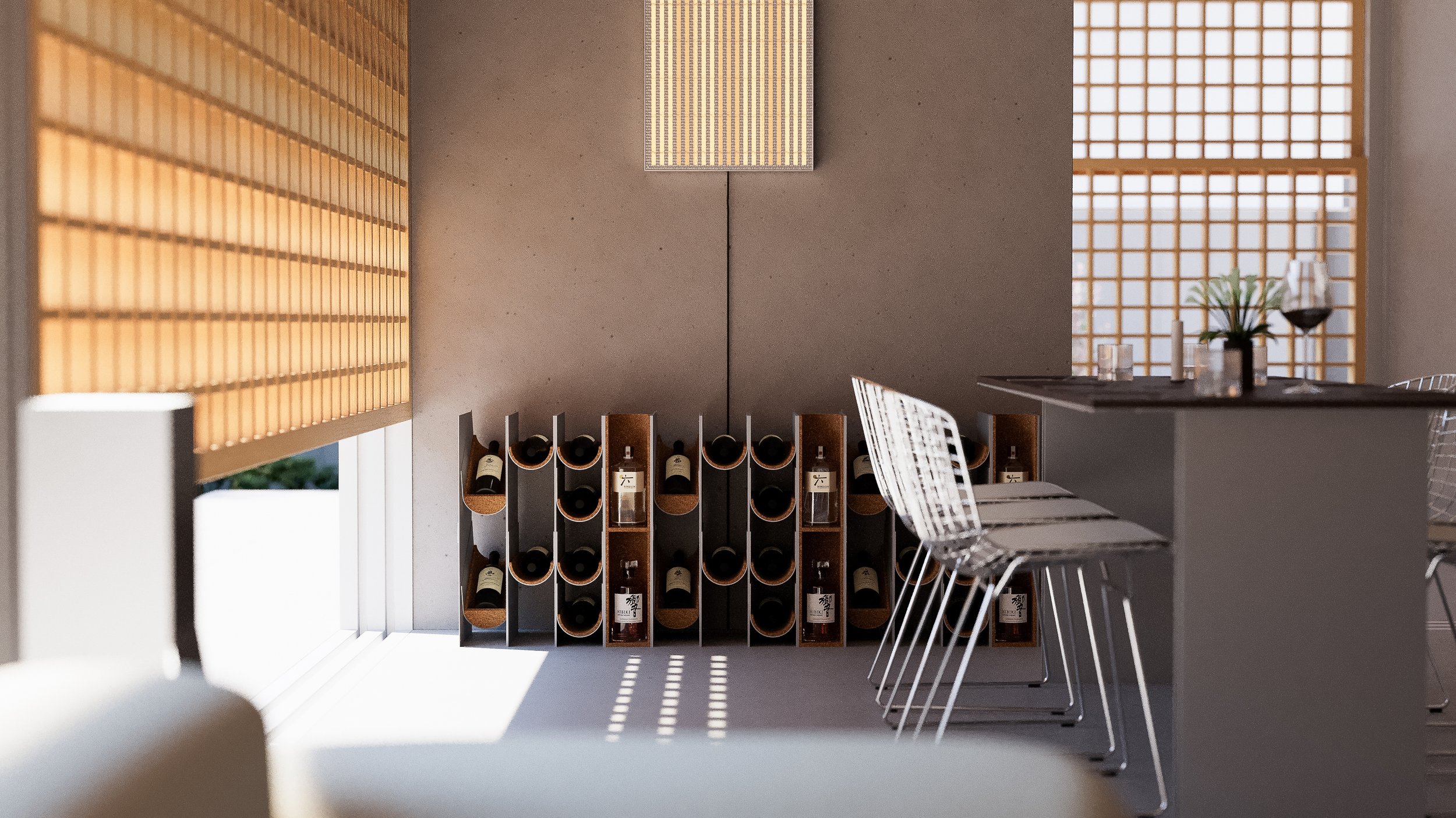 WR.01 is an expandable wine rack system that explores adaptability and variability in the storage and presentation of wines and spirits. Combining aluminum and cork, the design emphasizes material contrast, modularity, and functional elegance. Its expandable structure allows for flexible arrangements and different display orientations, catering to both domestic and professional environments.